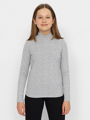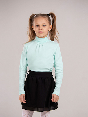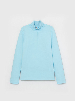 Водолазка из гладкокрашенного полотна со сборкой по окату рукава. Воротник-стойка с отворотом из рибаны с лайкрой.