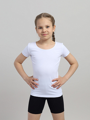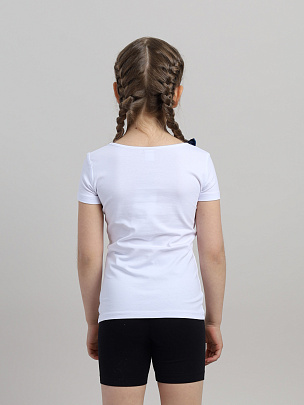 Футболка для девочки с коротким рукавом. Вырез горловины круглый, окантован бейкой из основного полотна.