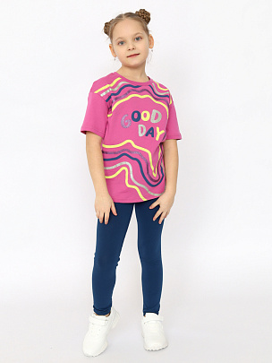 Комплект для девочки (футболка, брюки модель "легинсы") темно-синий
