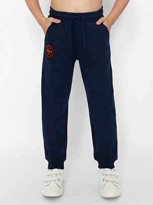 Джемпер для мальчика с длинными рукавами. Рукава втачные, с манжетами по низу. Горловина круглая, обработана воротником из полотна с эластаном. Брюки из набивного полотна с манжетами. По талии брюки собраны на резинку. Джемпер декорирован принтом.