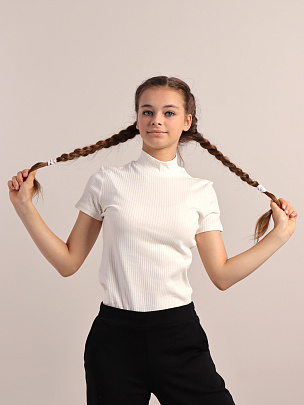 Водолазка из интерлока с разборой(лапша), с короткими рукавами и воротником-стойкой.