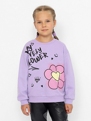 Джемпер для девочки с модным, трендовым принтом в стиле граффити (надпись: "Мой прекрасный цветок"). Крой оверсайз с заниженной линией плеча не сковывает движения, позволяя ребенку быть активным. Модель дополнена круглым вырезом горловины и длинными рукавами. Воротник, манжеты и пояс выполнены из полотна с эластаном.