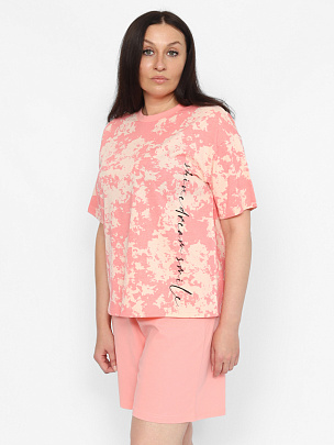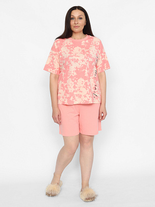 Пижама для женщин сделана из приятной на ощупь гипоаллергенной ткани (100% хлопок), прекрасно сидит на теле, не сковывая движений и отлично подходит для повседневной носки, домашнего отдыха. Футболка оверсайз с круглой горловиной и короткими рукавами, свободного кроя с принтом (надпись: блести,мечтай, улыбайся). Шорты до середины бедра, без карманов, имеют удобную посадку, благодаря широкому эластичному поясу.